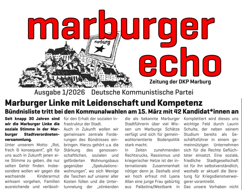 Das neue „Marburger Echo“ 1/2026 der DKP Marburg-Biedenkopf erschienen